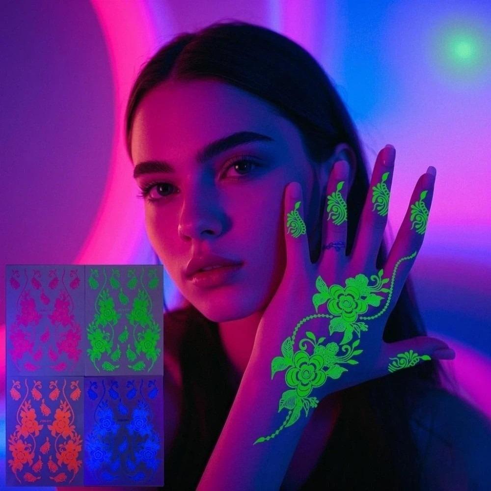 Water Transfer Decals Henna Temporary Tattoo Fake Luminous Body Art Sticker Music Festival