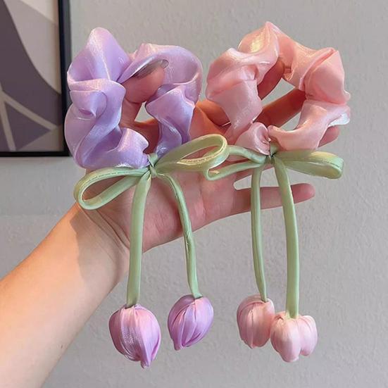 Unique and Eye-Catching Design: Featuring oversized tulip-shaped flowers and playful footprint patterns, these scrunchies blend elegance with a whimsical charm. Their distinctive shapes and creative aesthetics make them standout accessories that effortlessly elevate any hairstyle.