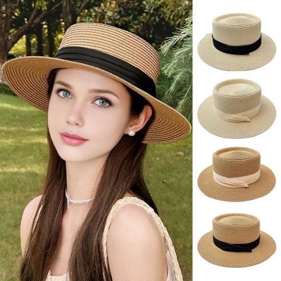 Premium Natural Straw Material: This flat straw hat is expertly hand-woven from high-quality natural grass fibers, showcasing a fine, even texture and a tight, durable structure. Its natural beige tone combined with a delicate light beige silk ribbon bow adds a touch of retro elegance and fresh summer charm, making it both simple and stylish.