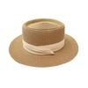 This flat straw hat features exquisite natural straw weaving craftsmanship, hand-woven with high-quality grass for a fine, even texture and firm structure. Its natural beige tone is elegantly complemented by a light beige silk ribbon bow, evoking a retro, literary summer vibe.