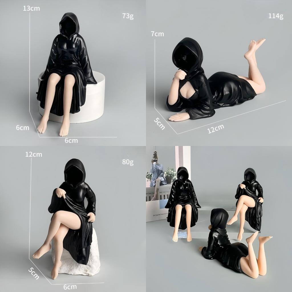 p{margin-block-start: 0; margin-block-end: 0}3d Mysterious Statue Gothic Black Robe Queen Figure Bookshelf Sculpture Spooky Sitting Statues Desktop Ornaments Gifts