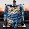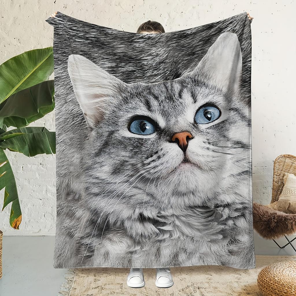 Cat Lovers UltraSoft Flannel Blanket Gray Tabby Print Quilted AntiTear AllSeason CouchBedHome Decor