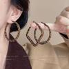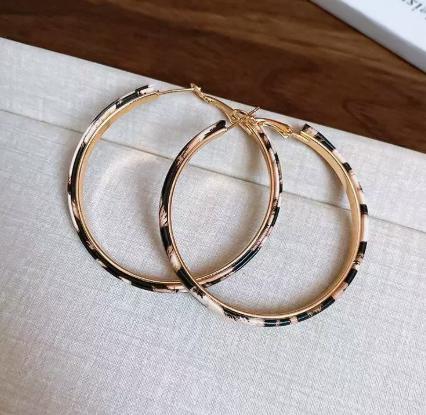Zhang's unique colorful leopard print large hoop earrings with gold rims (brown and ).