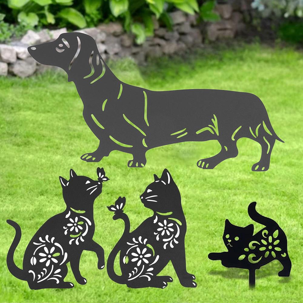 Garden Animal Silhouette Stakes Cat Chicken Iron Metal Statues Decorative Lawn Yard Outdoor Finish Hollow out Stakes