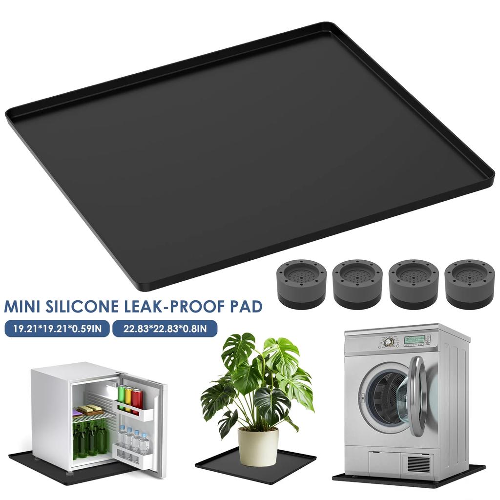 Mini Fridge Silicone Mat Waterproof Fridge Drip Tray with 4 Base Raisers Leak Resistant Under Refrigerator Mat Floor Protector