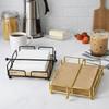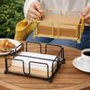 Napkin Holder Iron Flat Serviette Holder Freestanding Wooden Base Square Paper Raised for Kitchen Office Table Reusable