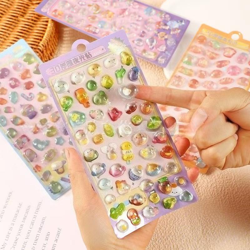 Cartoon 3D Floating Fun Stickers Crystal Diamond Children's Decorative Stickers 3D Stickers Cute Relief Stickers for Girls