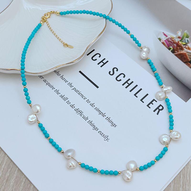 New chinoiserieretro natural turquoise necklace freshwater pearl xiaomi beads beaded clavicle chain