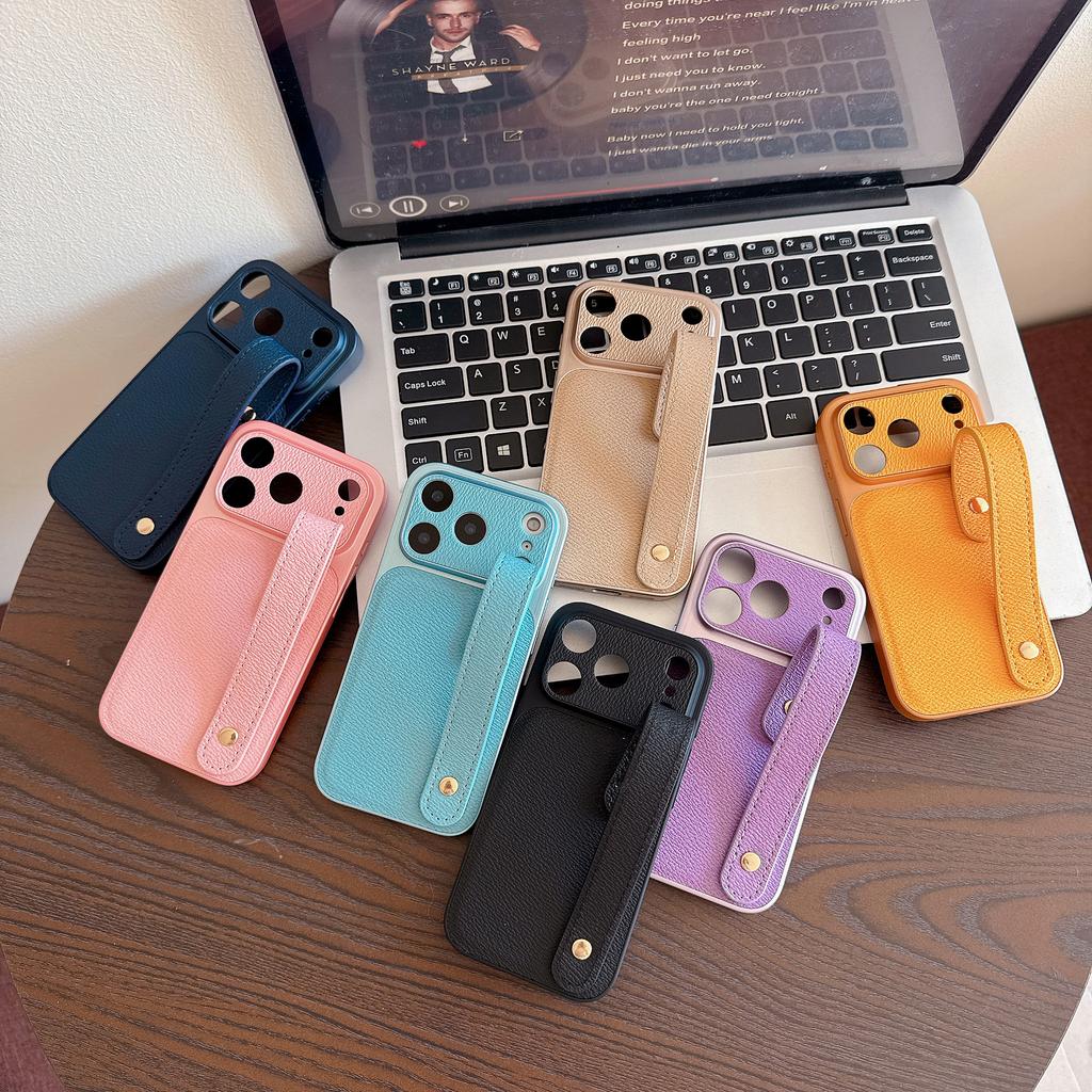 Wristband Leather Skin Hybrid Phone Case For iPhone 17 Pro Max iPhone 16 15 14 13 Pro Max with Hand Strap PC+PU Matte Anti-skid Hard Cover