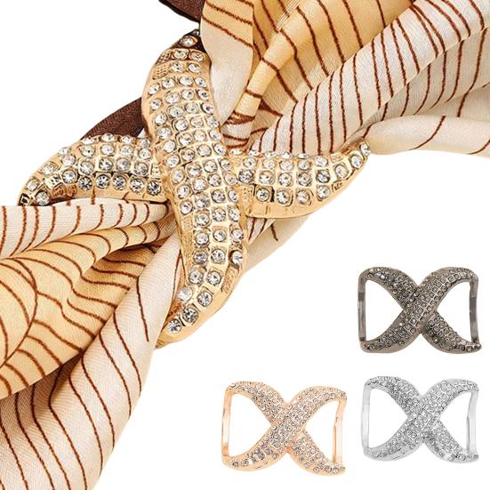 Scarf Rings for Women X Shaped Scarf Buckle Rhinestone Shawl Slide Pin Clip for Clothing Silk Scarves Accessories
