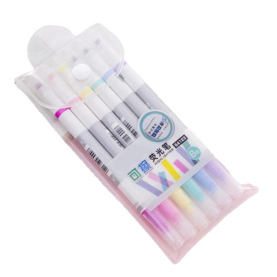 6Pcs Highlighter Pen Erasable Double-Ended Fluorescent Marker Pen Quick-Dry Non-Smudge Ink Pen for Notes And Study Revision Eye Protection