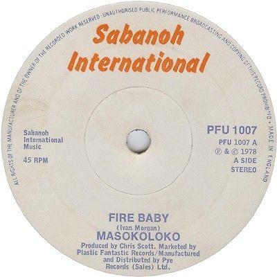 7inch Record MASOKOLOKO Fire Baby PFU1007 Sabanoh Interna 1978 UK Reggae Ska Dub Used