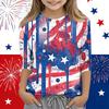 Print Tops For Youth Girls Round Neck 3/4 Sleeves T-Shirts Trendy Tops Outfit Tees Independence Day