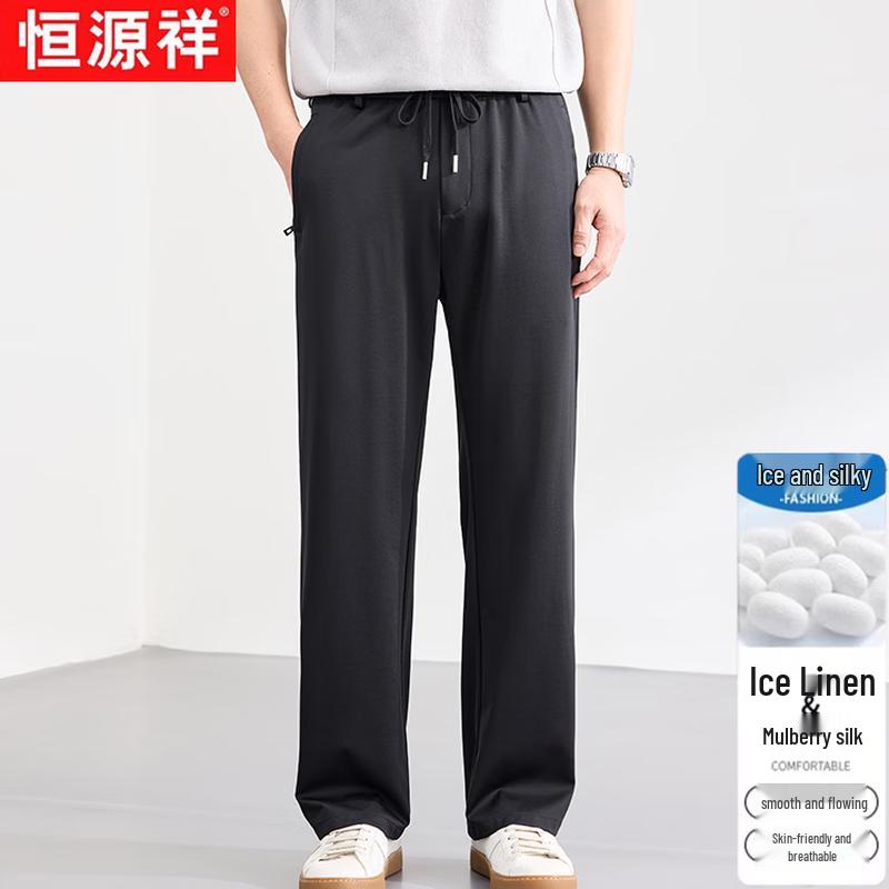 Hengyuanxiang Men's Silk-Linen Blend Straight Casual Pants