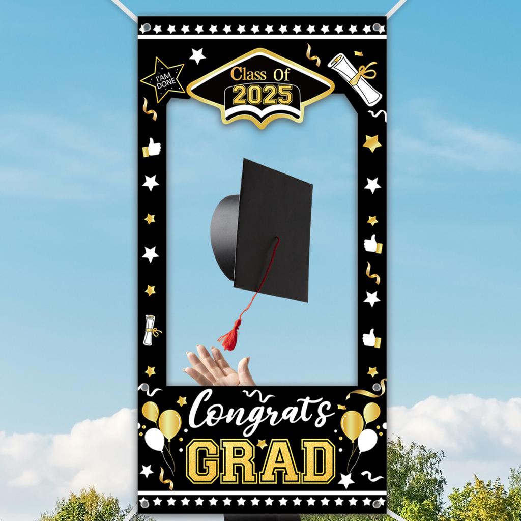 Black Gold Graduation Cloth Photo Booth Props Frame Class of 2026 Happy Graduation Season Party Decorations Grad Favors Supplies