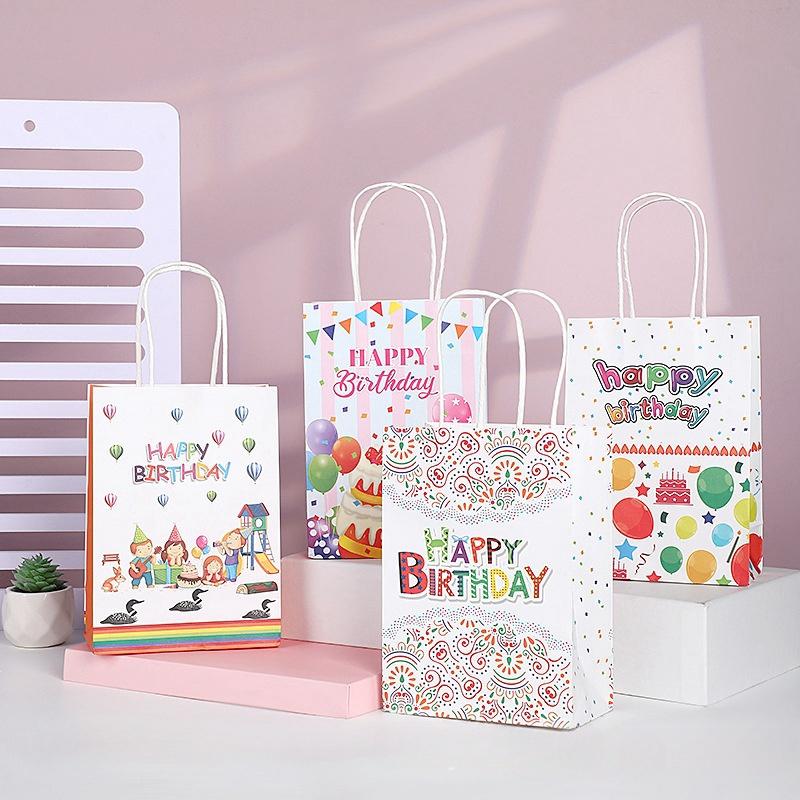 StoBag, Happy Birthday Durable Reusable Paper Tote Bags, for children's birthdays, parties, joyful event, 12/30pcs