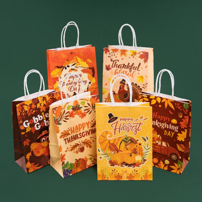 StoBag Thanksgiving Eco-Friendly Kraft Paper Tote Gifts Bags for packing Goodies Presents Candy Perfect for Parties 12/30pcs
