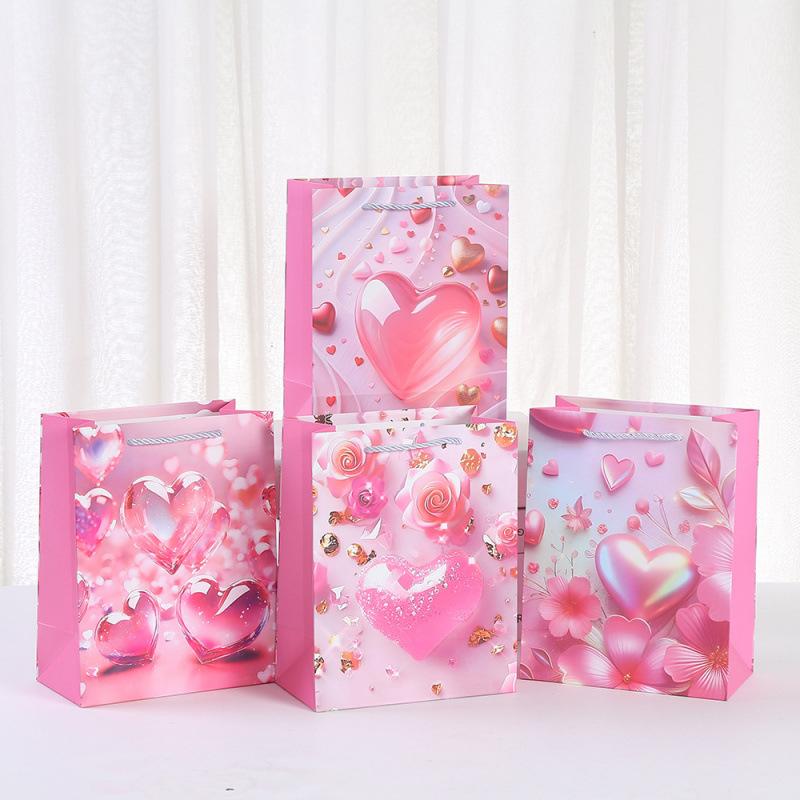 12pcs Heart Design Gift Bags For Valentine’s Day Bridal Shower Wedding Party Bags With Cute Love Heart Print