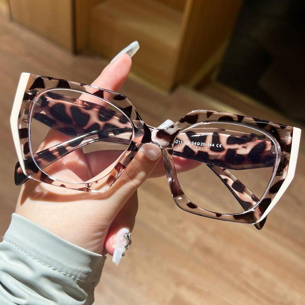 1Pc Women's Fashionable Plain Glasses New Style Elegant Large Frame Personality Patchwork Leopard Print Design Trendy Christmas