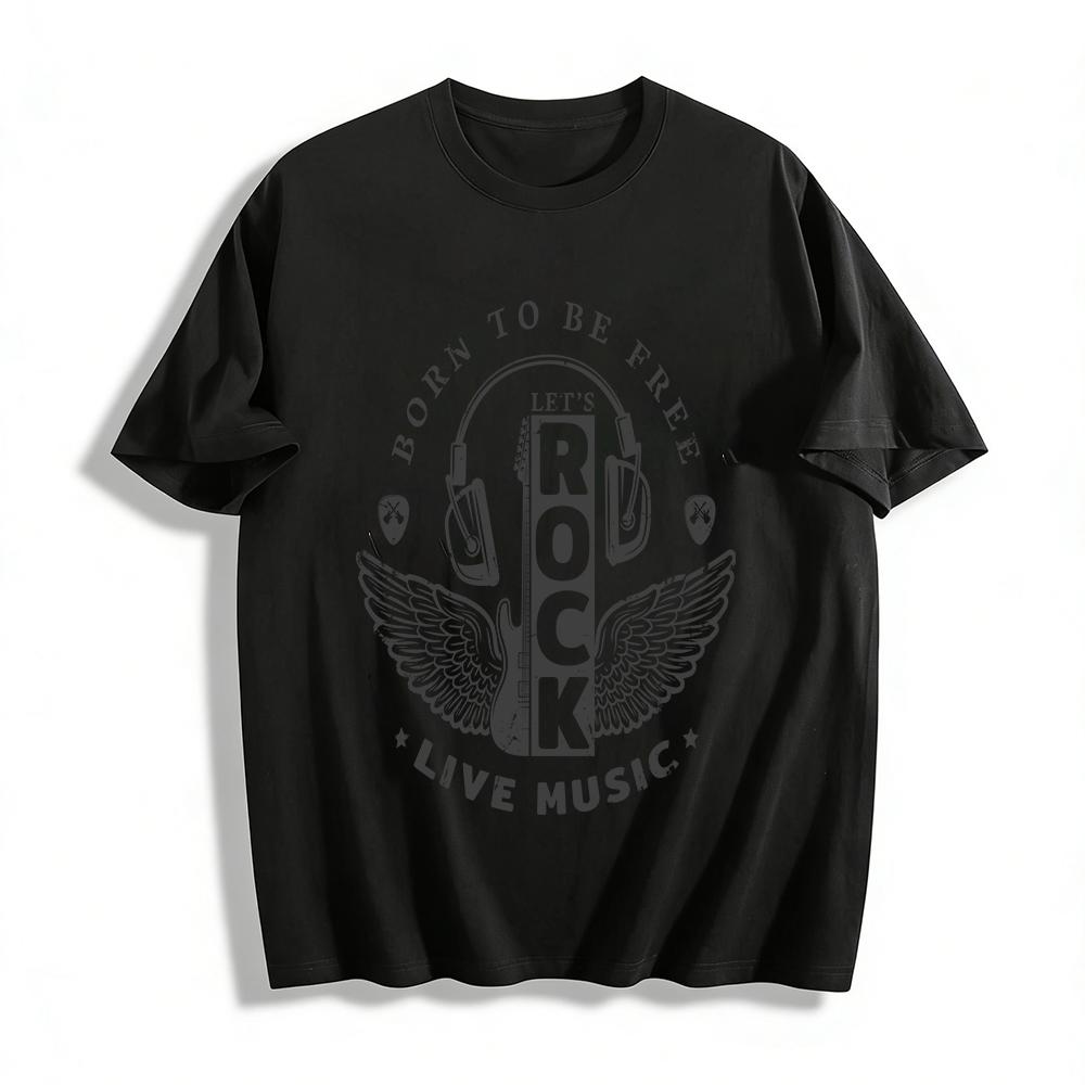 Born To Be Free Lets Rock Live Music Rock And Roll Graphic Tee Pure cotton T-shirt