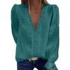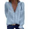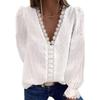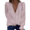 Women's Blouse V-neck Chiffon Shirt Embroidered Lace Long Sleeve Tops