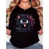 Fluffy Black Cat Women's T-shirt - Cute Cartoon Pattern