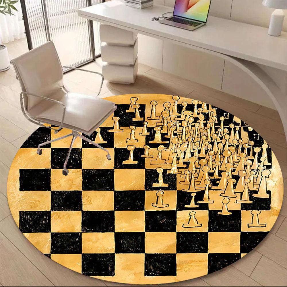 1pc Chess Pieces Office Round Area Rug, Indoor Mat Suitable ForOffice, Under Office Chairs Bedroom Living Room Home Decor, Room Deco 072