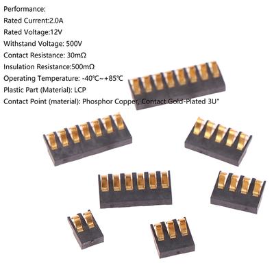 Smt Spring Battery Connector 2.0 Mm Pitch 2 3 4 5 6 7 8 Pin Male Contact Power Charge Connector Contacts Gold Plated
