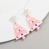 New Glitter Pink Christmas Tree Acrylic Earrings for Women Girls Cute Sweet 3-Tree Long Dangle Earring Party Jewelry Gifts