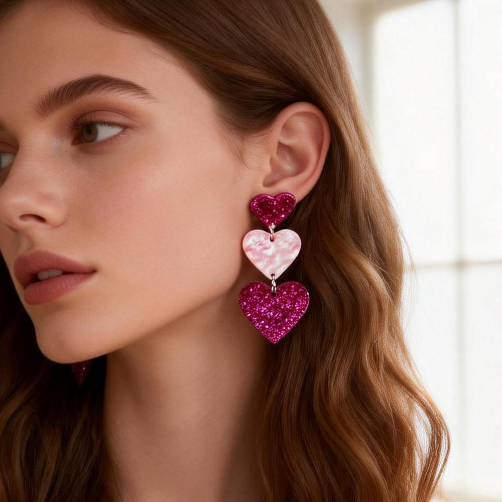 New Valentine's Day Acrylic Earring for Women Girls Glitter Colorful Love Heart Splicing Drop Earrings Sweet Jewelry Gifts