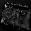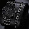 2/4PCS Black Men Watch Set Fashion Classic Three Eye Quartz Watch Jewelry Set Suitable for Daily Clothing Matching Perfect Gift