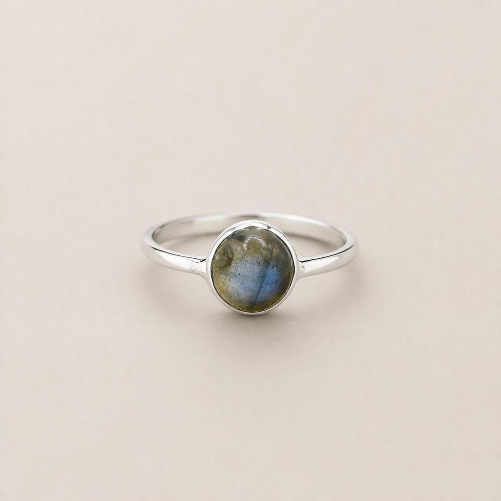 Labradorite Round Ring, 925 Sterling Silver Bezel Ring, Boho Gemstone Statement Jewelry
