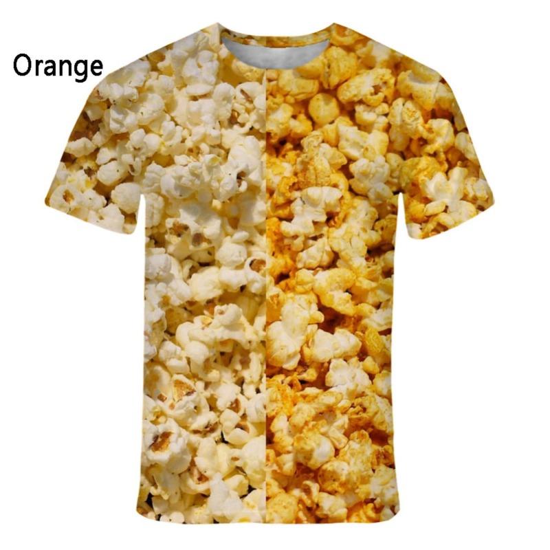 Summer New Men's T-shirt 3D Printed Popcorn Series Comfortable and Trendy Short Sleeve Round Neck Plus Size Top