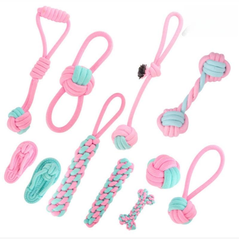 JUSTINLAU Pet Toys Anti-bite Teeth Cleaning Toys Pink Blue Mini Ball Cotton Knot Tooth-grinding Toys for Dogs Home Pet Supplies