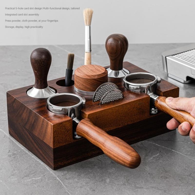 51-54MM Double Hole Coffee Portafilter Holder Wooden CoffeeTamper Distributer Puck Screen Coffee Brush Organizer Holder Barista