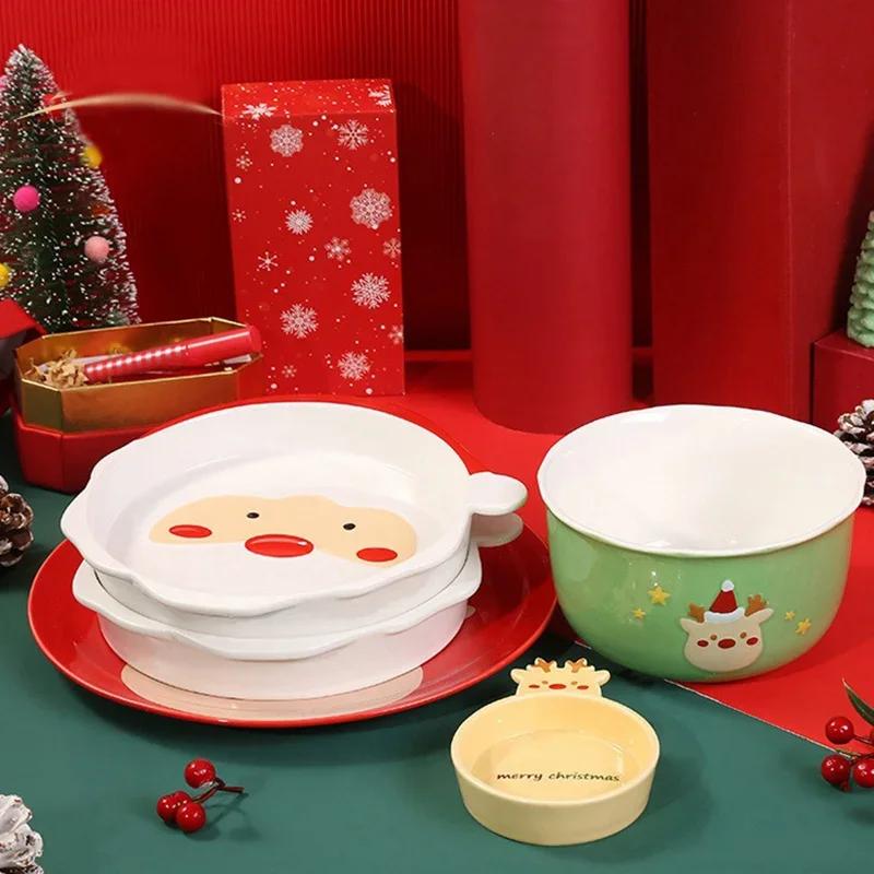Christmas Ceramic Tableware Elk Dinner Plate Santa Claus Food Bowl Plate Microwave Heating Food Container Dishes Christmas Gifts