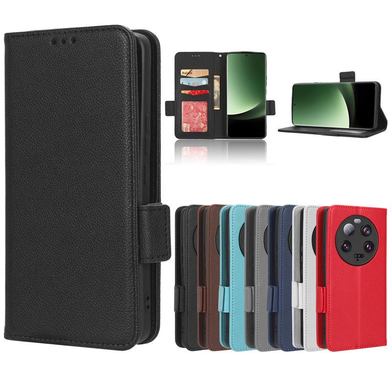 Xiaomi 13 Ultra Leather Flip Case with Card Holder - Lychee Pattern Protective Cover