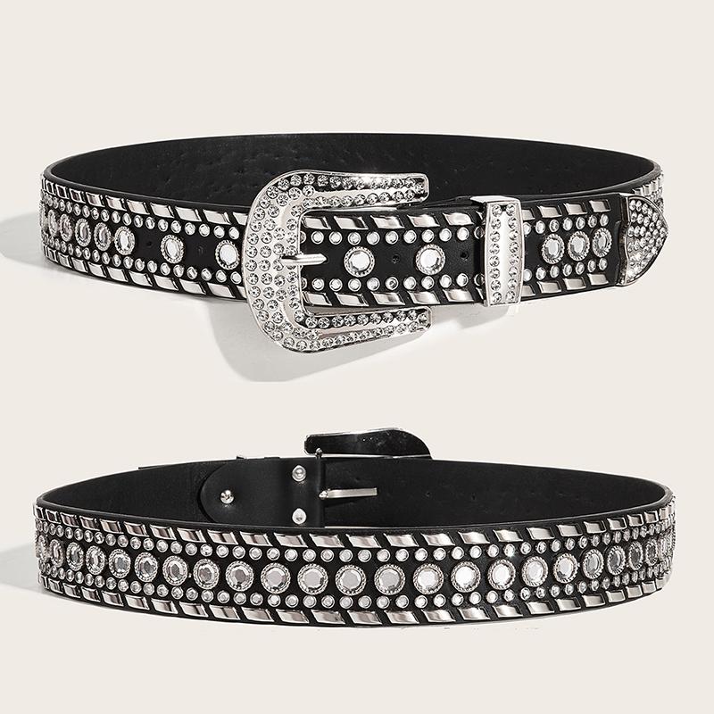 Fashion Luxury Punk Y2K Rhinestones Belt Women'S Metal Buckle Fashion Waistband Jeans Pants Decoration Spicy Girl Belt