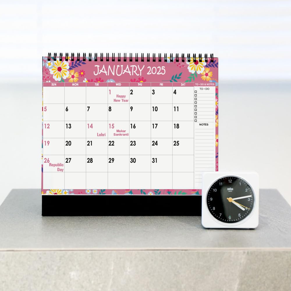AccuPrints l 2025 l Floral Desk Calendar l 12 Months l Includes Note and To.Do. Section l 250 GSM l Planning, Tracking &