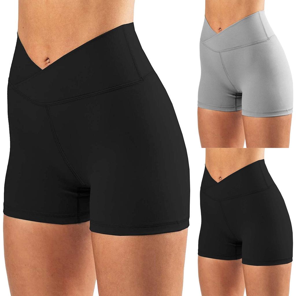 Women's High Waist Print Workout Yoga Shorts Hidden Pockets Athletic Shorts Legs