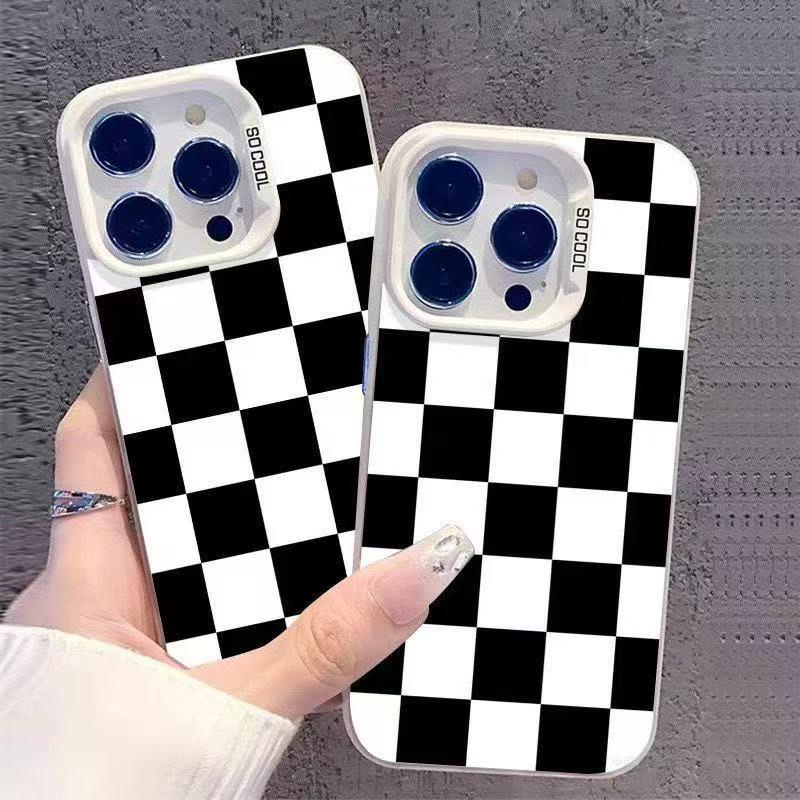 Black & White Plaid Phone Case for Apple iPhone 13-17 Pro Max - Cross-border European and American Style