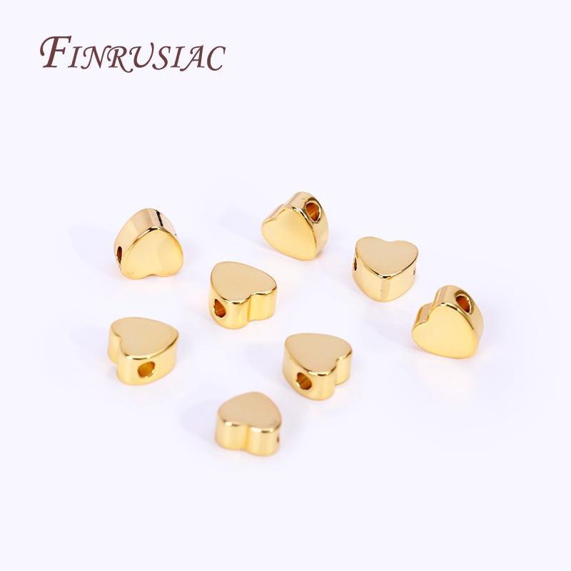 Spacer Separator Bead For Bracelet Necklace Supplies 2 Types 18K Gold Plated Brass Metal Heart Beads DIY Jewelry Making Findings