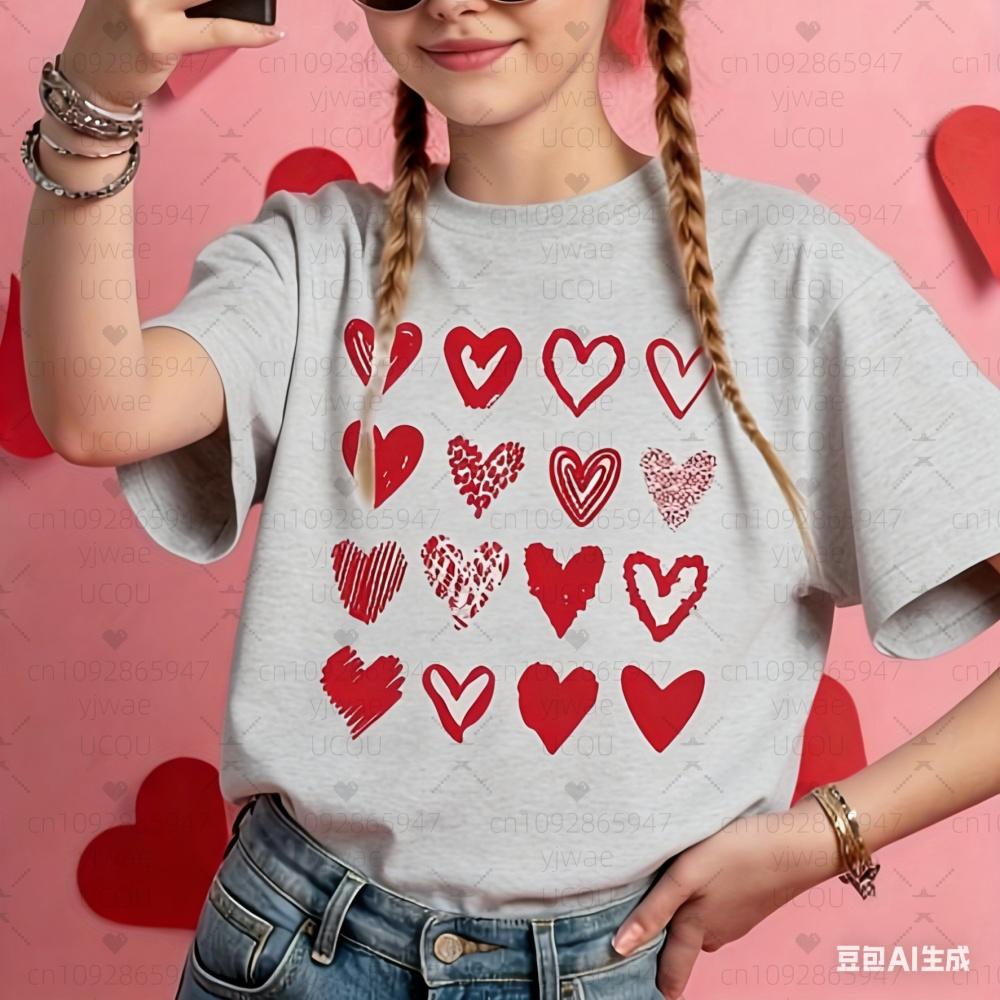 26 Sprint Valentines Day Women Couple Short Sleeves Tee Womens Heart Print Round Neck TShirt Unisex Anniversary TShirt