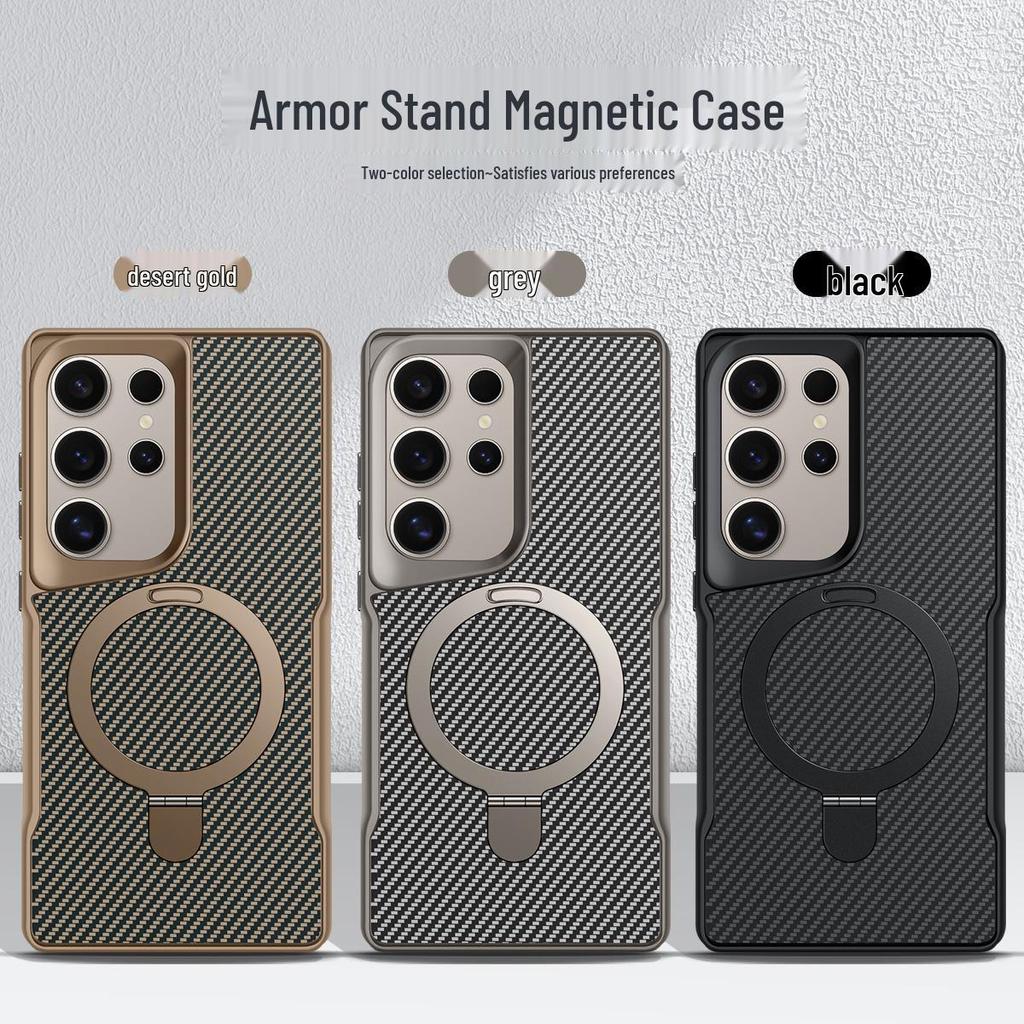 Samsung S25 Ultra Slim Carbon Fiber Magnetic Case with Stand & Drop Protection