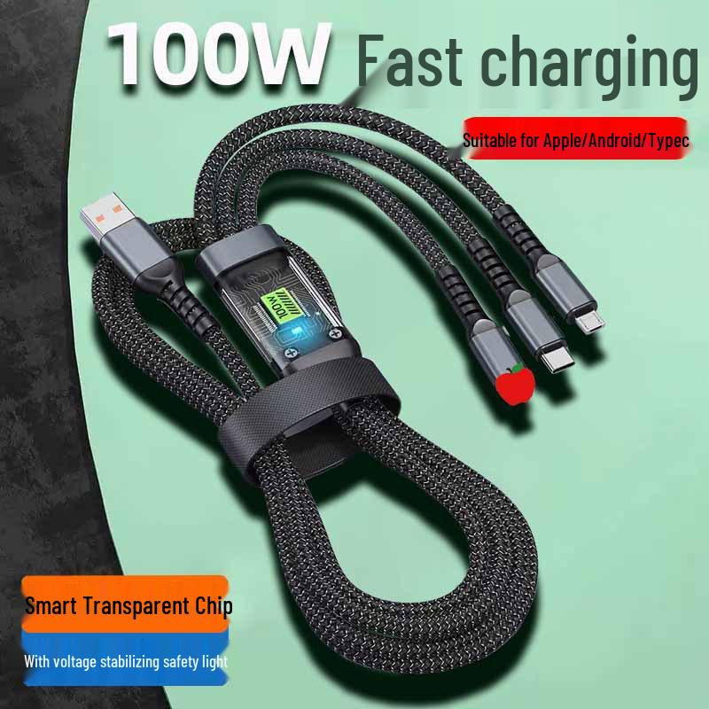 Transparent 100W 3-in-1 Type-C Fast Charging Cable - 6A Flash Charge, One-to-Three Functionality
