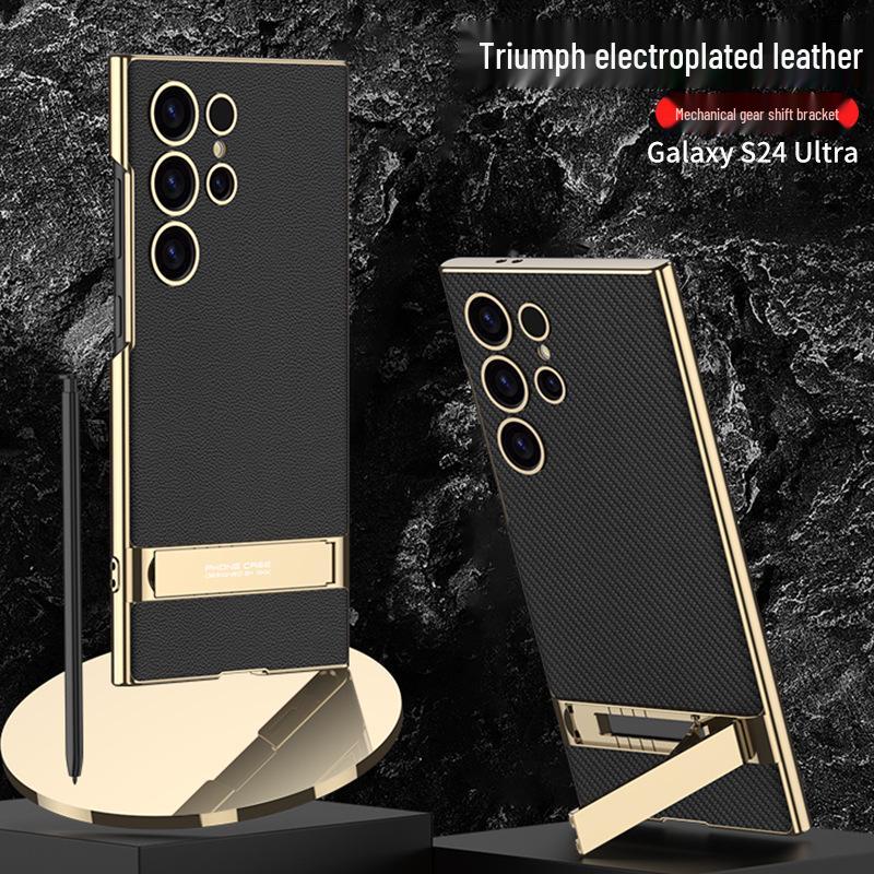 GKK Electroplated Leather Bracket Phone Case for S24 Ultra/S23U - Drop-Proof Precision Cover