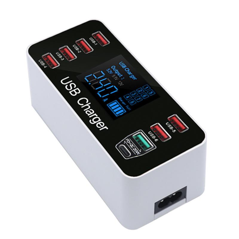 8-Port USB Charger QC3.0 Fast Charging with Smart Display & PD20W for Phones & Tablets