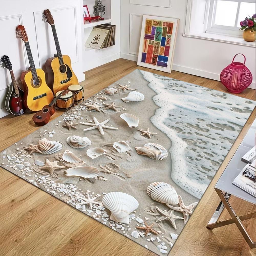 Beach Washable Rugs Starfish Area Rug Decor Carpet for Bedroom Living Room, Non-Slip Carpets for Kitchen Entryway Laundry Dining