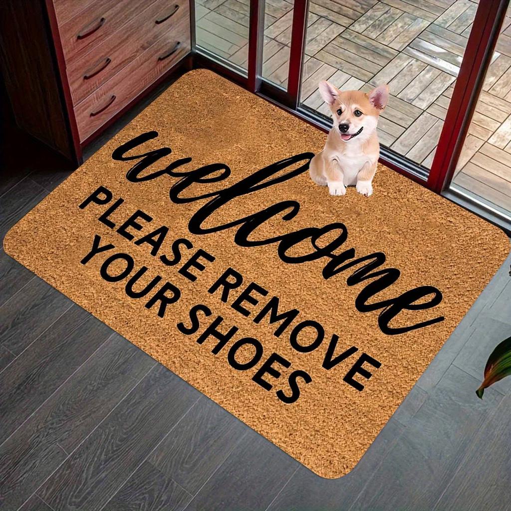 "Welcome Please Remove Shoes" Flannel Doormat - Machine Washable Polyester for Entryway, Kitchen, Balcony Indoor Decor Mat