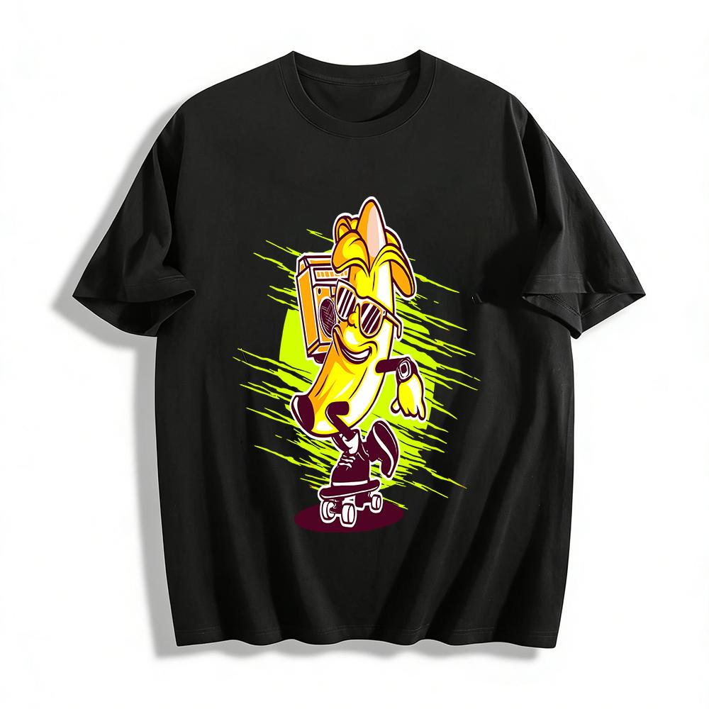 Cool Retro Skateboarding Banana Print Tee Street Style Music Themed Top Pure cotton T-shirt